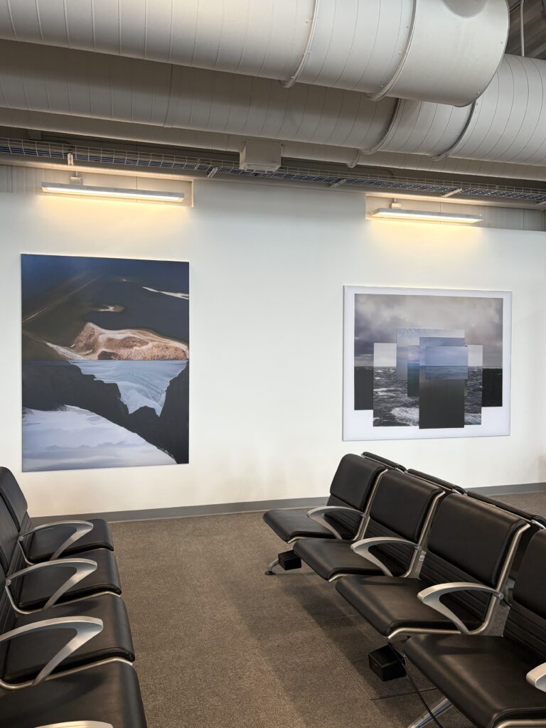 If you are flying out of YFK (Region of Waterloo International Airport) you will find two works from our The Landscape is Dead CAFKA.25 presentation – Mirror Magic and Visible Horizons – on display for the next two years in the Departures Lounge!